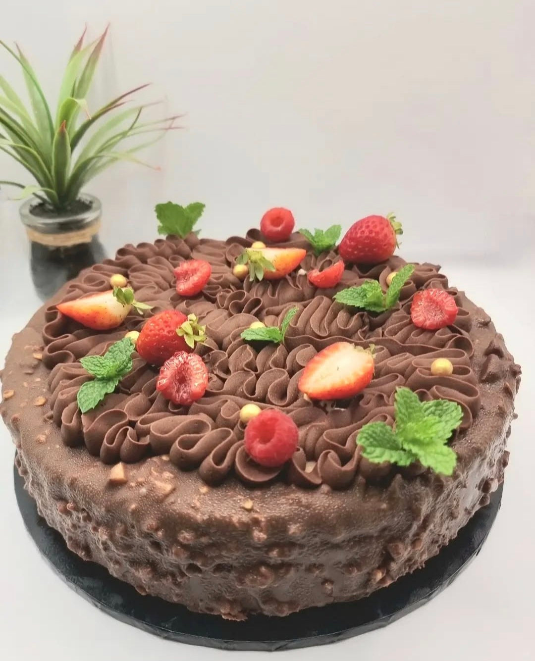 What's inside- A light chocolate sponge, cherry chocolate creme, cherry confit with a chocolate mousse, dipped in chocolate and topped with a whipped chocolate cream and cherries.